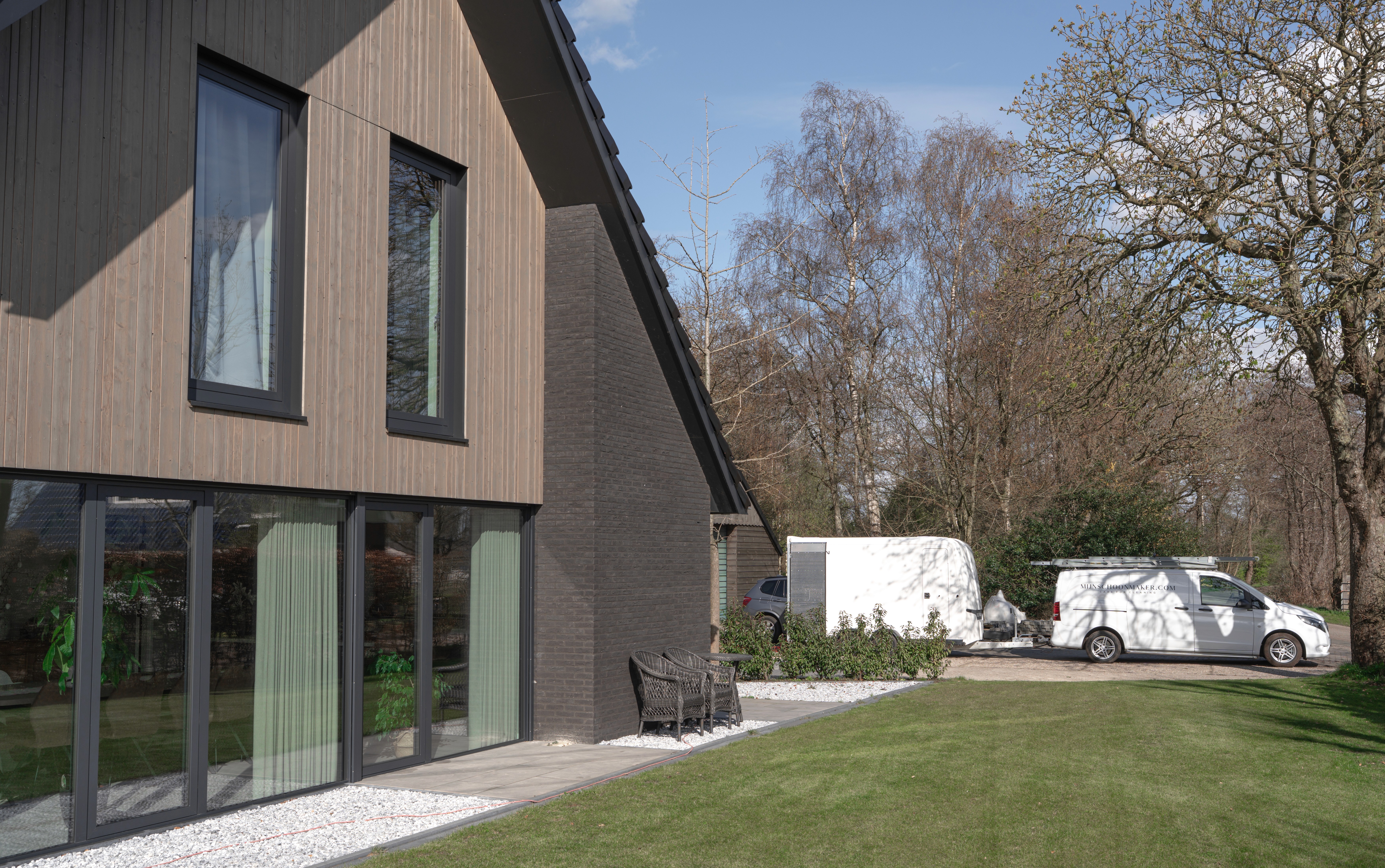 Bij mijnschoonmaker.com staat zorg, veiligheid en representatie altijd centraal. Onze ladders worden zorgvuldig geplaatst en beschermd tegen de gevel, en ons team draagt overschoenen om vloeren en interieur te beschermen. Wij werken uitsluitend met het beste professionele materiaal dat streeploos reinigt en uw ramen, kozijnen en gevelelementen optimaal beschermt. Het aanmaken van gefilterd water gebeurt volledig in eigen beheer en wordt periodiek gecontroleerd door Amysoft, zodat we altijd verzekerd zijn van de hoogste kwaliteit en optimale resultaten. Ook onze voertuigen weerspiegelen onze aanpak: onze bussen en aanhangwagens zijn altijd schoon en netjes, van binnen en van buiten. Zo komen wij professioneel en voorbereid bij u aan, klaar om een service te leveren die consistent, betrouwbaar en volledig ontzorgend is. Met deze aandacht voor detail garanderen wij niet alleen een perfect schoon resultaat, maar ook rust, zekerheid en een representatieve uitstraling van uw woning of bedrijfspand.